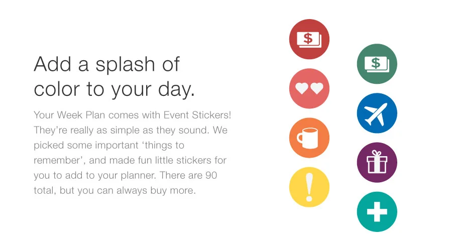The kicker is our new sticker set! Ninety stickers to indicate birthdays, anniversaries, pay-days or bills due. You can always order more too if you're really sticker happy. The Mini and Week Plan both will come with the sticker set included in the back of the tablet.